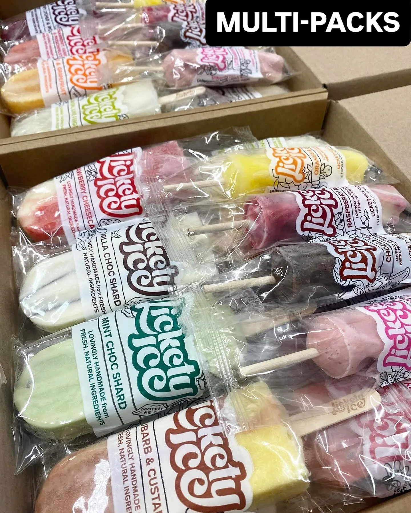Handmade in SMALL BATCHES and rapidly frozen, our lollies are bursting with natural flavours and have a deliciously soft and creamy texture. All Lickety Ice lollies are gluten-free, and we have flavours suitable for vegan or dairy-free diets.